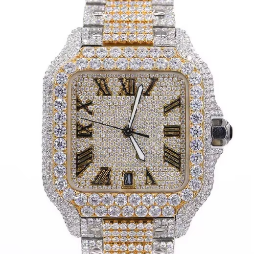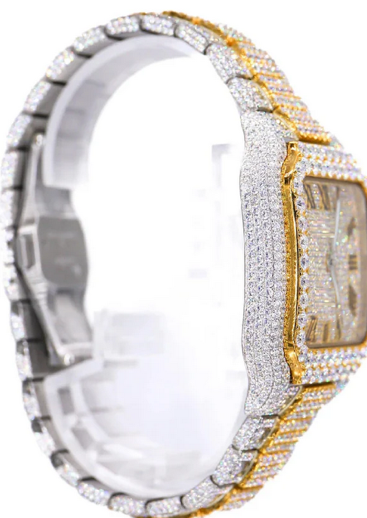 LAB Luxury Moissanite Diamond Watch Dual Tone Iced Hip Hop Style Rectangle Stainless Steel Case ETA Movement Crystal Dial Window