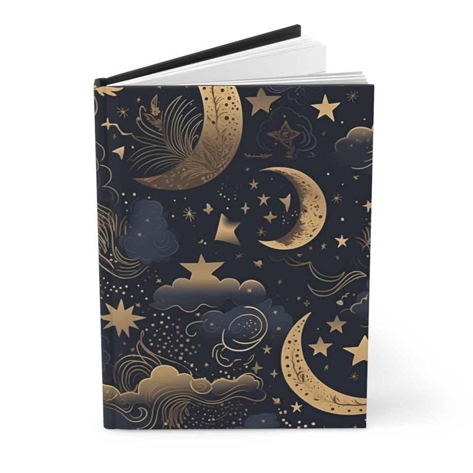 LABON Celestial Dream Starry Night Moon Phase Vintage Leather Scrapbooking Journal Notebook