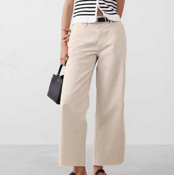 LADY 98% Organic Cotton, 2% Elastane Spandex WIDE-LEG HIGH-RISE CROPPED CHINO PANTS