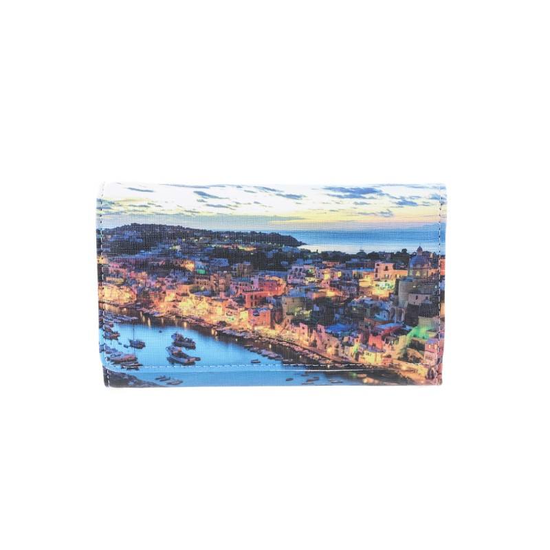 LADY48 1720 Eco-Leather Luxury Wallet Geometric Logo Print Long Short Length Options Button Closure RFID Feature PU Polyester
