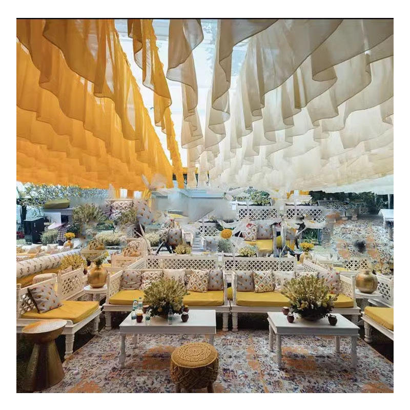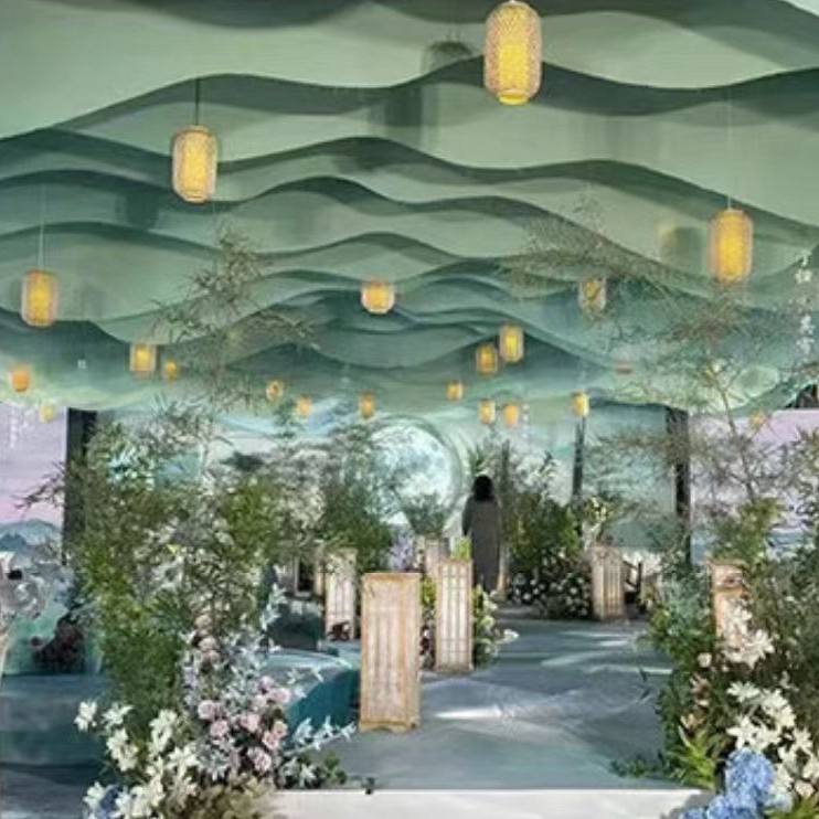 LANJO Luxury Event Ceiling Decorative Lighting Sheer Drape Water Drop Shape Curtain for Restaurant Scenic Area Seaside