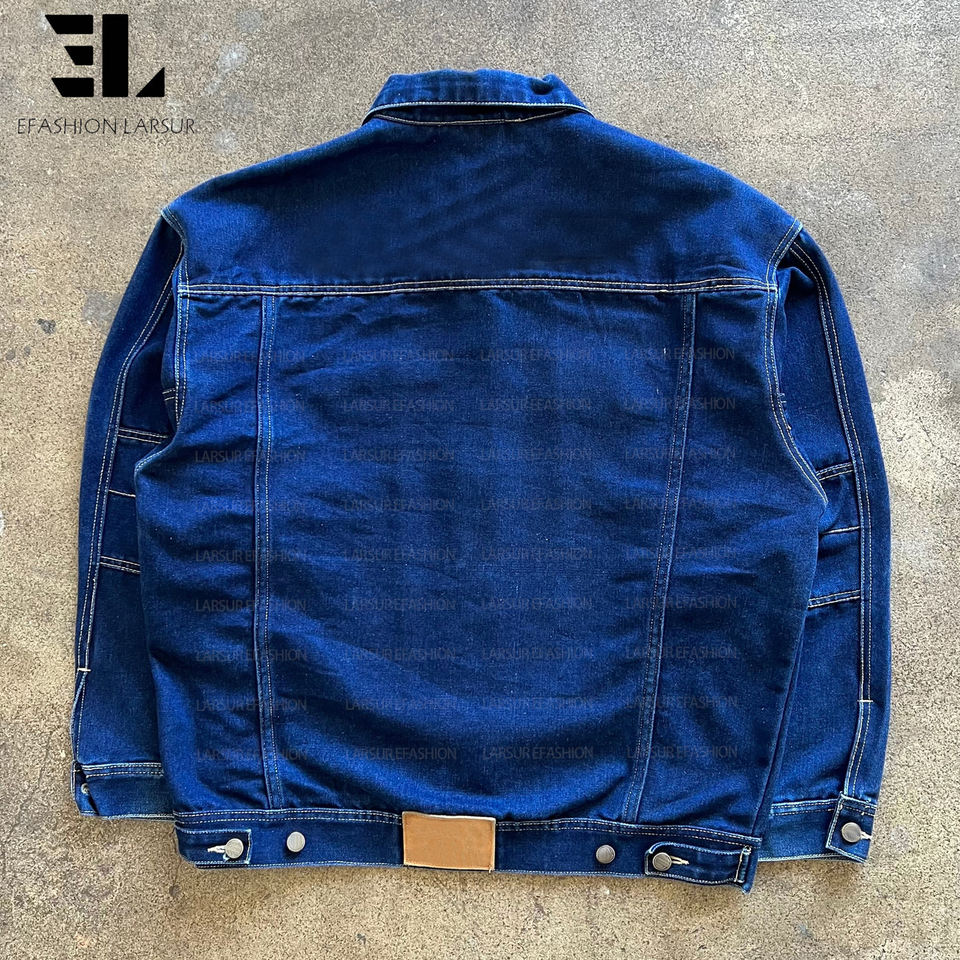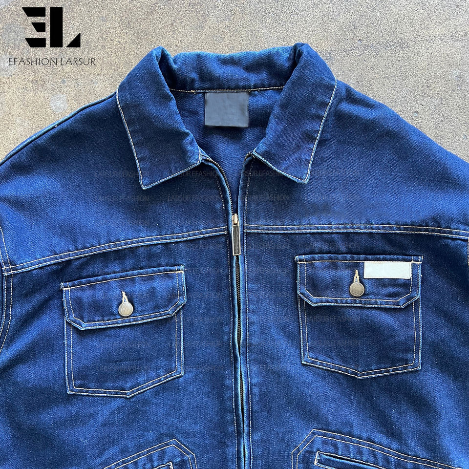 LARSUR Custom Distress Wash Cotton Twill Denim French Work Jacket Work Wear Worker Hunting Denim Jeans Chore Coat