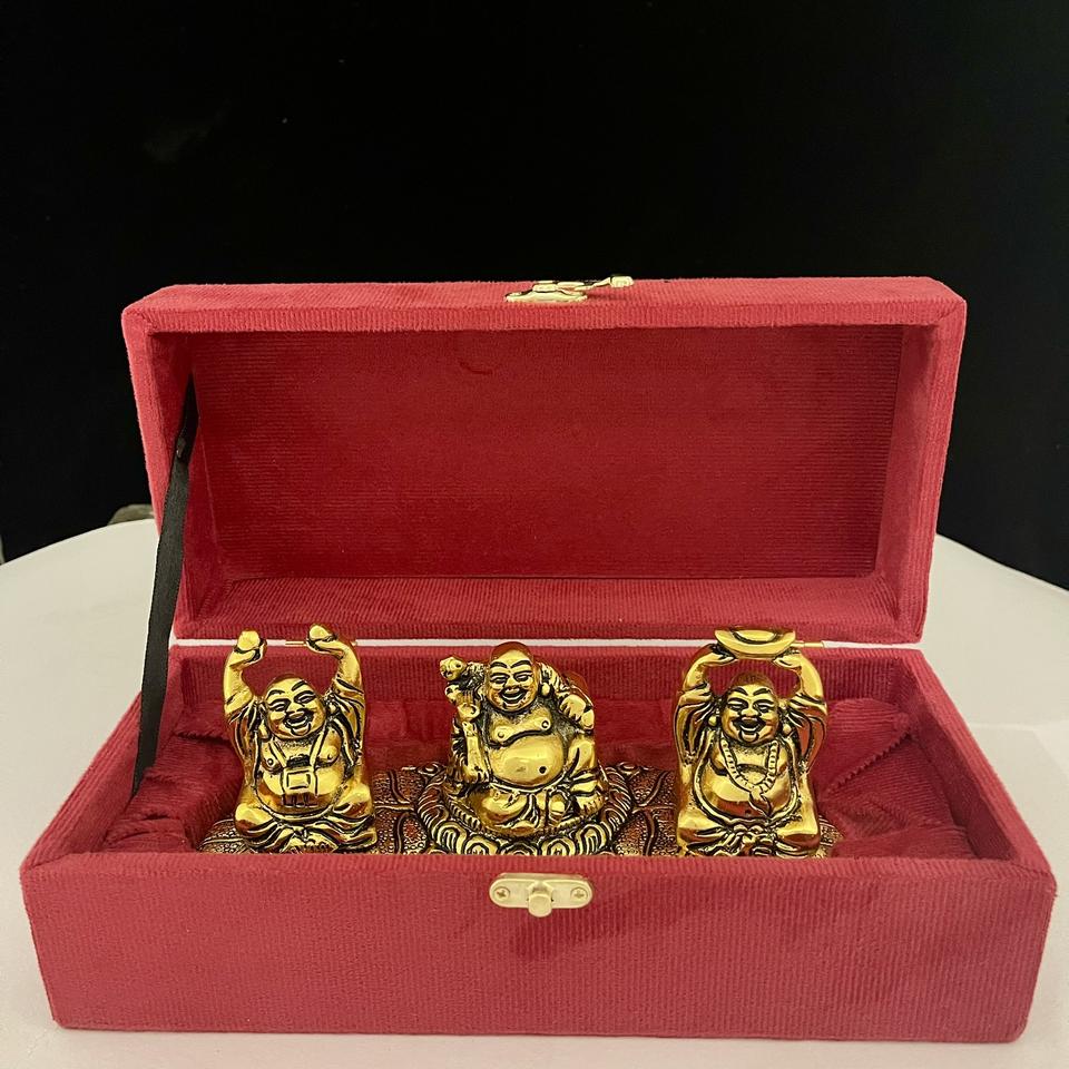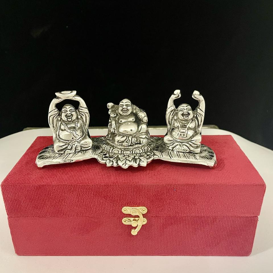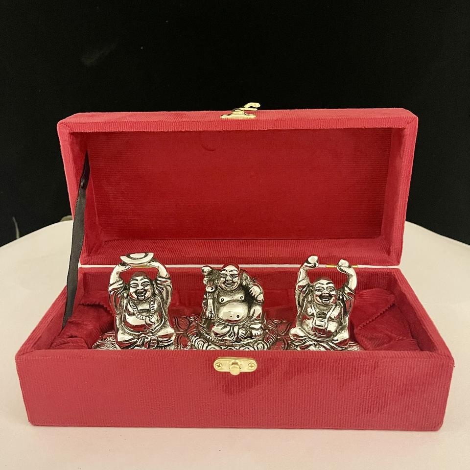 LAUGHING BUDDHA 3 PC SET WITH EXCLUSIVE BOX PACKING FOR GIFTING PURPOSE SILVER and gold