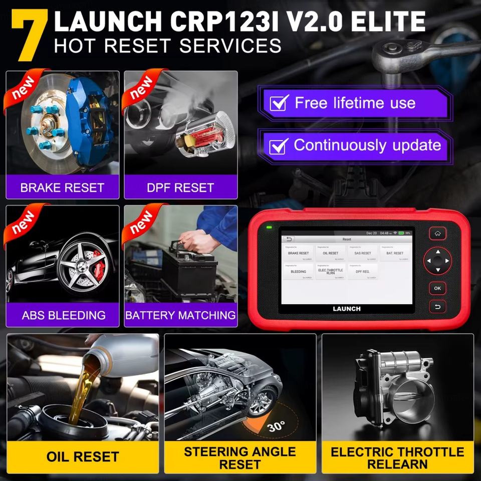 LAUNCH CRP123I V2.0 Elite OBD2 Scanner 2025 Lifetime Free Update Tool for Engine ABS SRS Diagnostics Tools
