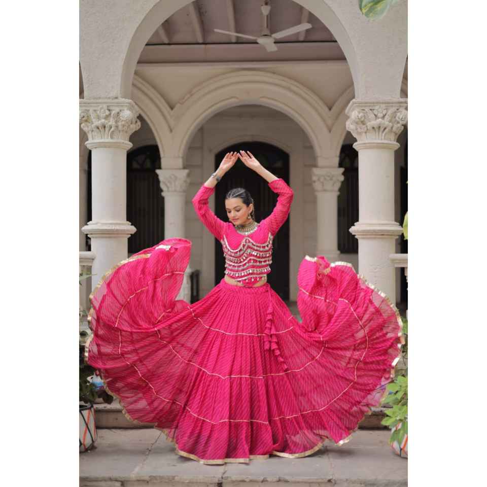 LAUNCHING NEW FESTIVE WEAR LEHENGA CHOLI FABRIC LEHERIYA PRINT WORK WITH ATTRACTIVE GOTA PATTI LACE