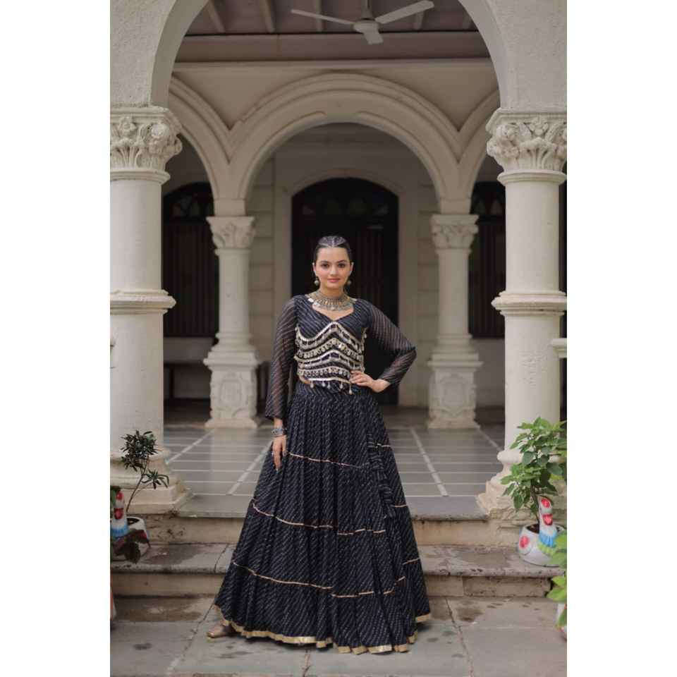 LAUNCHING NEW FESTIVE WEAR LEHENGA CHOLI FABRIC LEHERIYA PRINT WORK WITH ATTRACTIVE GOTA PATTI LACE