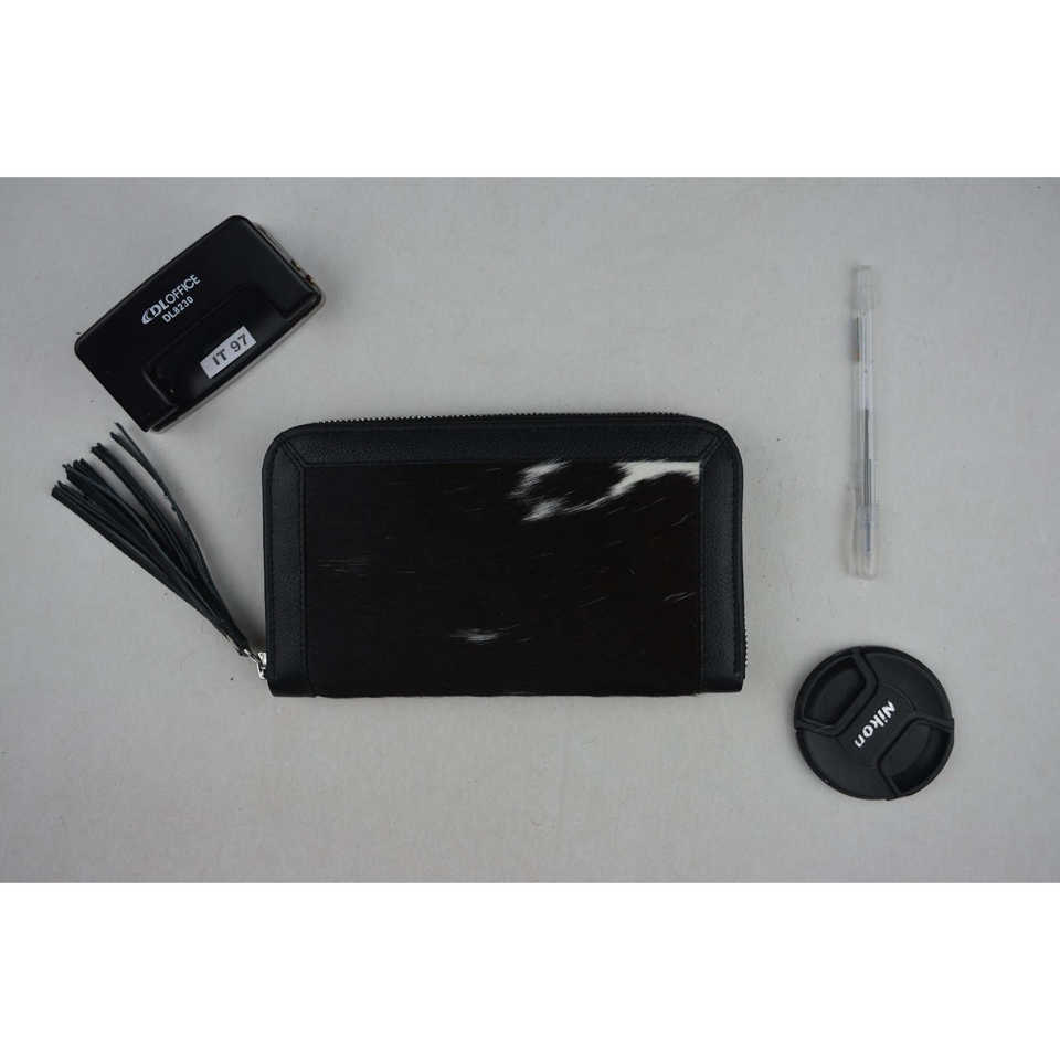 LAXURA Small Cowhide Ladies Wallet Open Card Holder with Zipper Closure RFID Feature Cork Fabric Material Polyester PU Lining