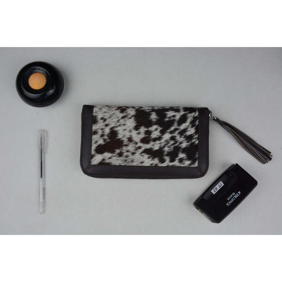 LAXURA Women's Luxury Cowhide Leather Clutch Handmade Portable Dress Bag with Embroidery Chains Fur Decor Genuine Leather Lining