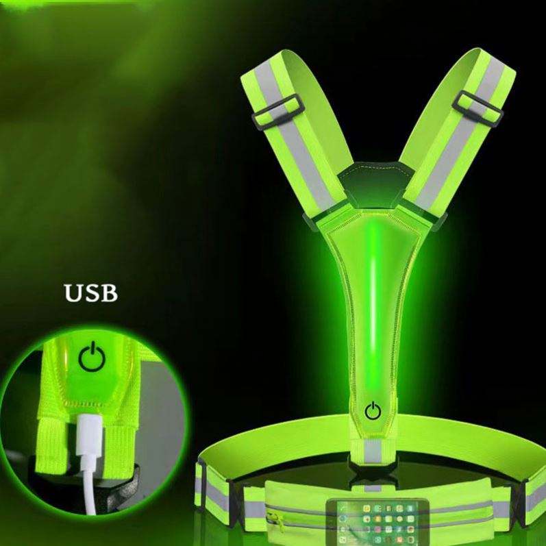 LED Adjustable with Bag Vest Night Running Cycling Reflective USB Vest Outdoor Running Vest