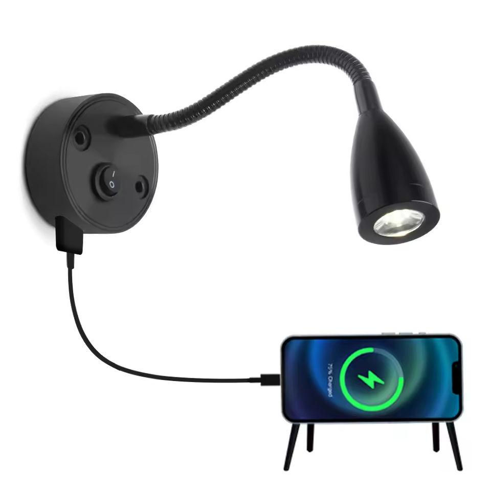 LED Aluminum Hotel Bedroom Reading Light RV Yacht Lamp Dual USB Charging Ports Flexible Hose Modern Spotlight Interior