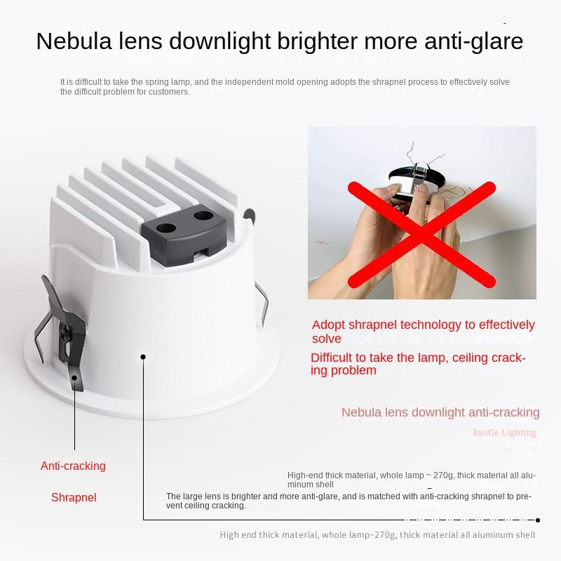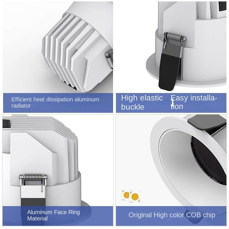 LED Anti-Glare Aluminum IP65 Embedded Home Office Intelligent No Main Light High Luminous Efficiency Downlight