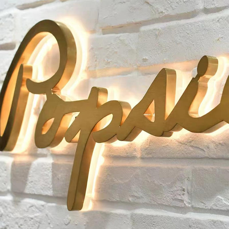 LED Back Lit Letters 3D Logo Laser Cut Metal Stainless Steel Sign Personalized Business Reception Wall Logo Company Name
