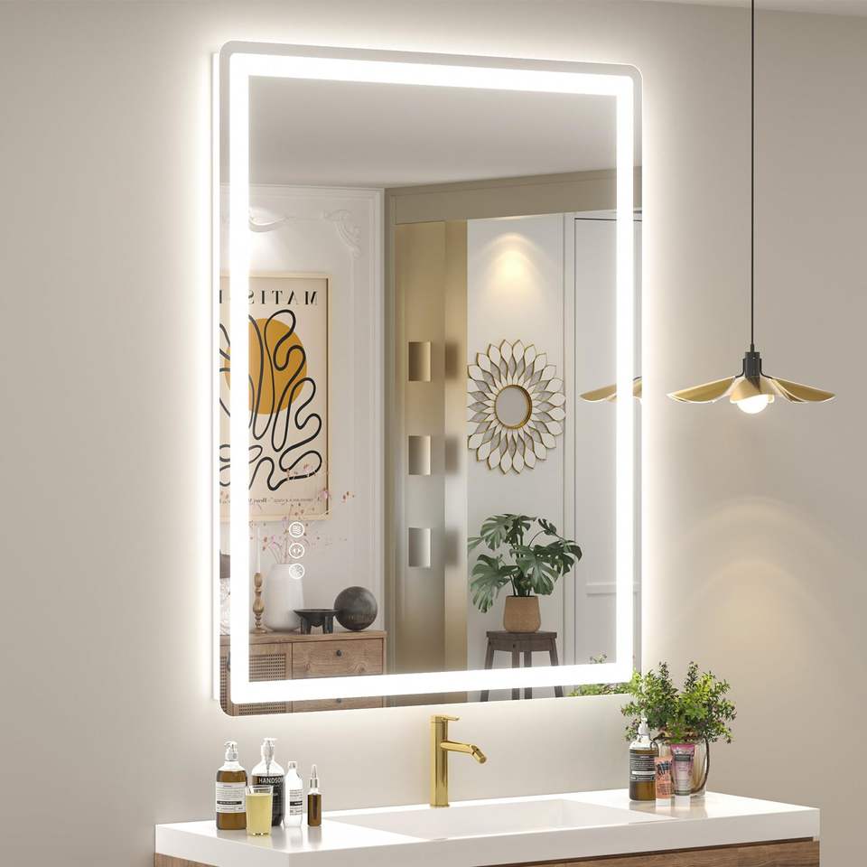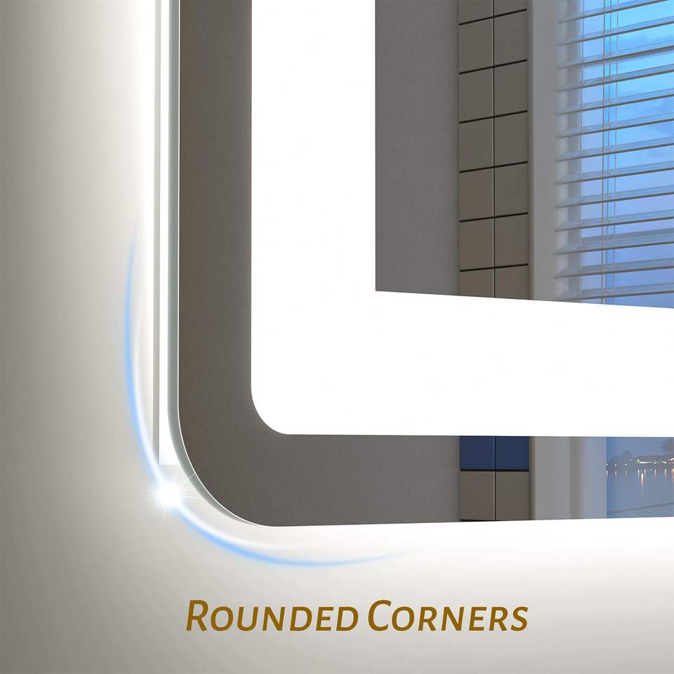 LED Bathroom Mirror with Front & Backlight Anti-Fog Rectangle Illuminated Mirror for Villa Use
