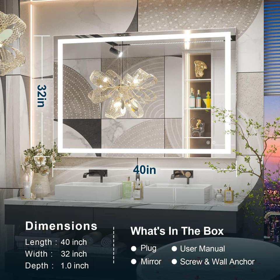 LED Bathroom Vanity Mirror Anti-Fog Dimmable Lights Sleek Elegant Design 3 Color Modes Memory Function Front Backlit Tempered