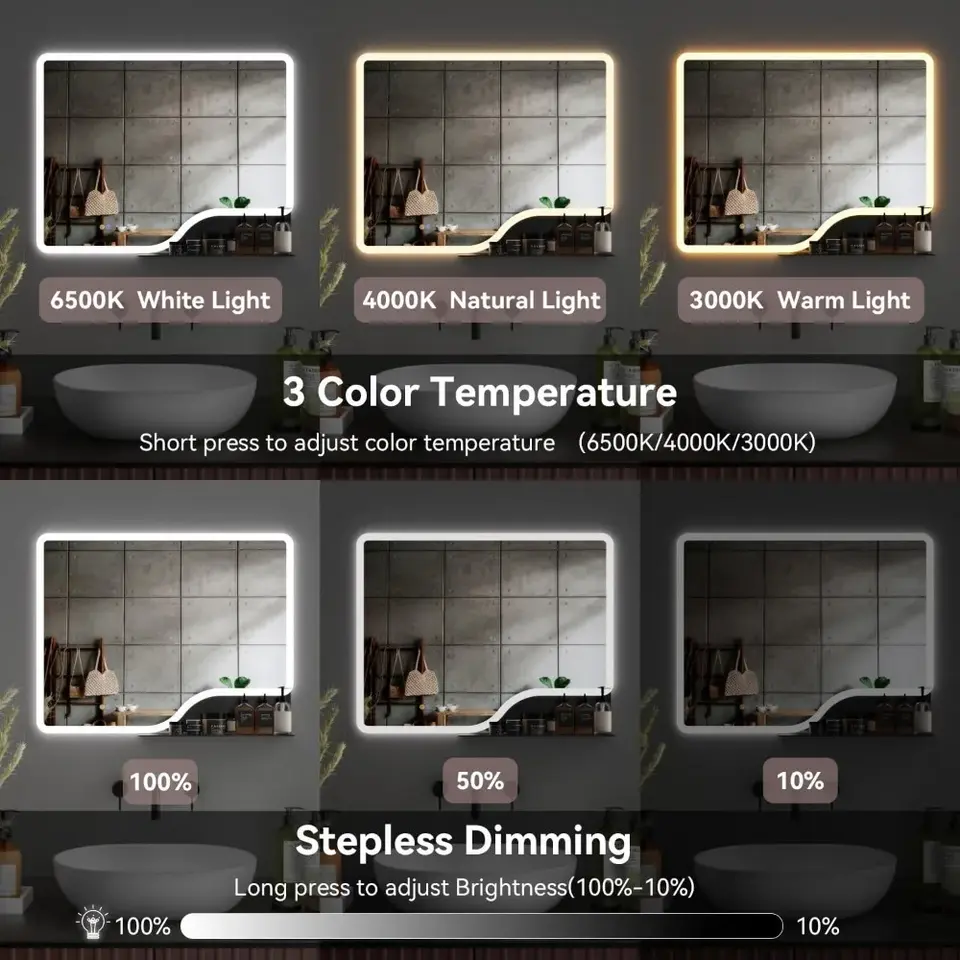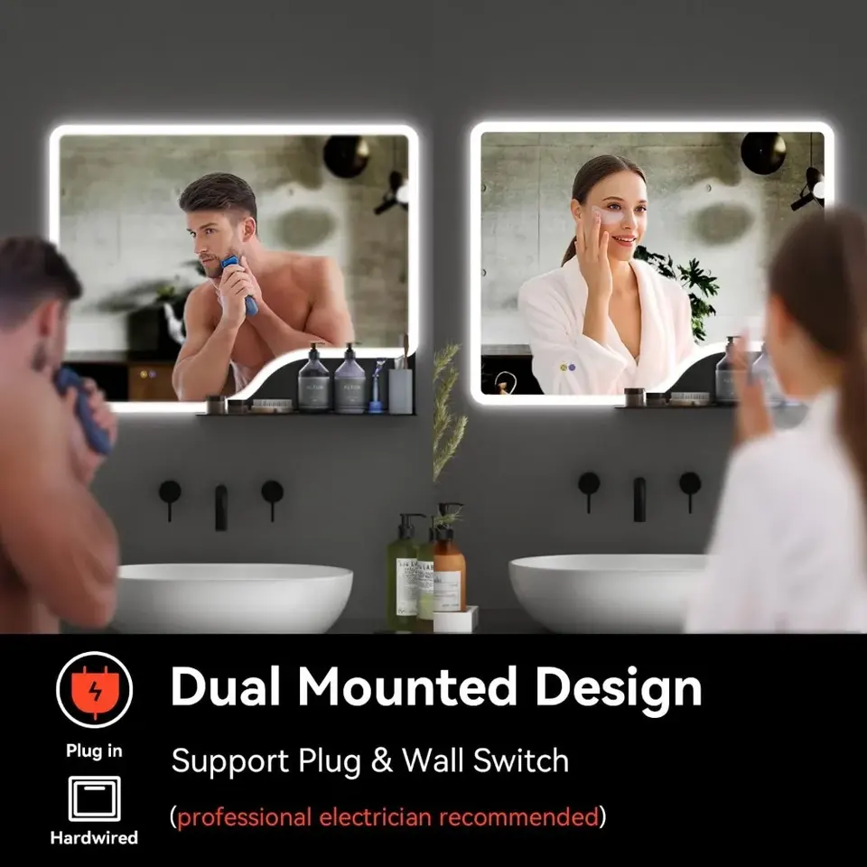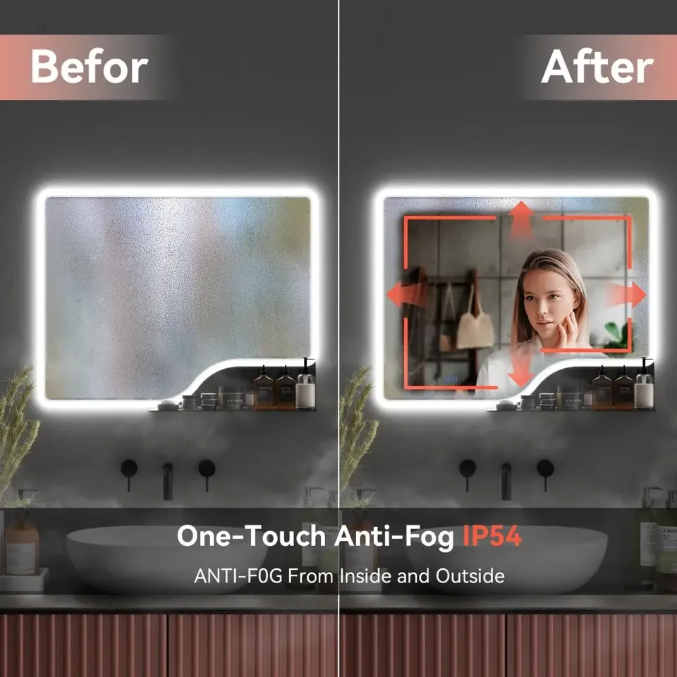 LED Bathroom Wall-Mounted Vanity Mirror with Illuminated Shelf and 3 Colors Smart Backlit Vanity Mirror with Touch Switch