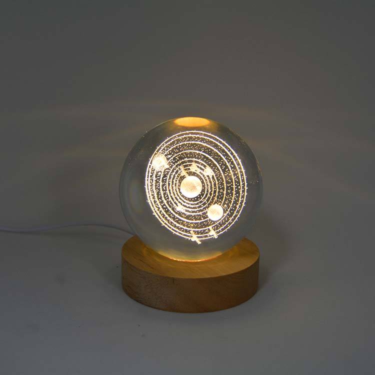 LED Cold White Light Base Round Wooden Lighted Base USB Crystal Ball Sphere Holder Display Stand for 3D Crystal Glass Resin Art