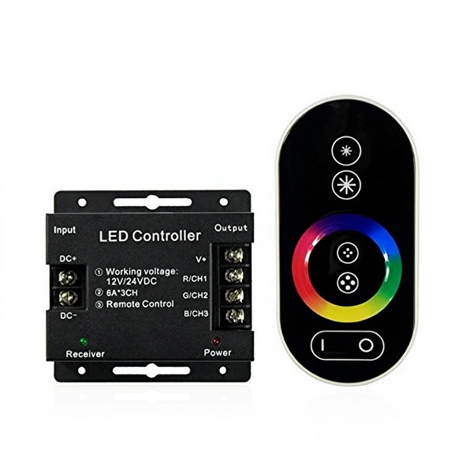 LED Controller Touch Remote RGB LED Strip Controller 12V 24V DC 6A 3CH With Receiver Power Indicator