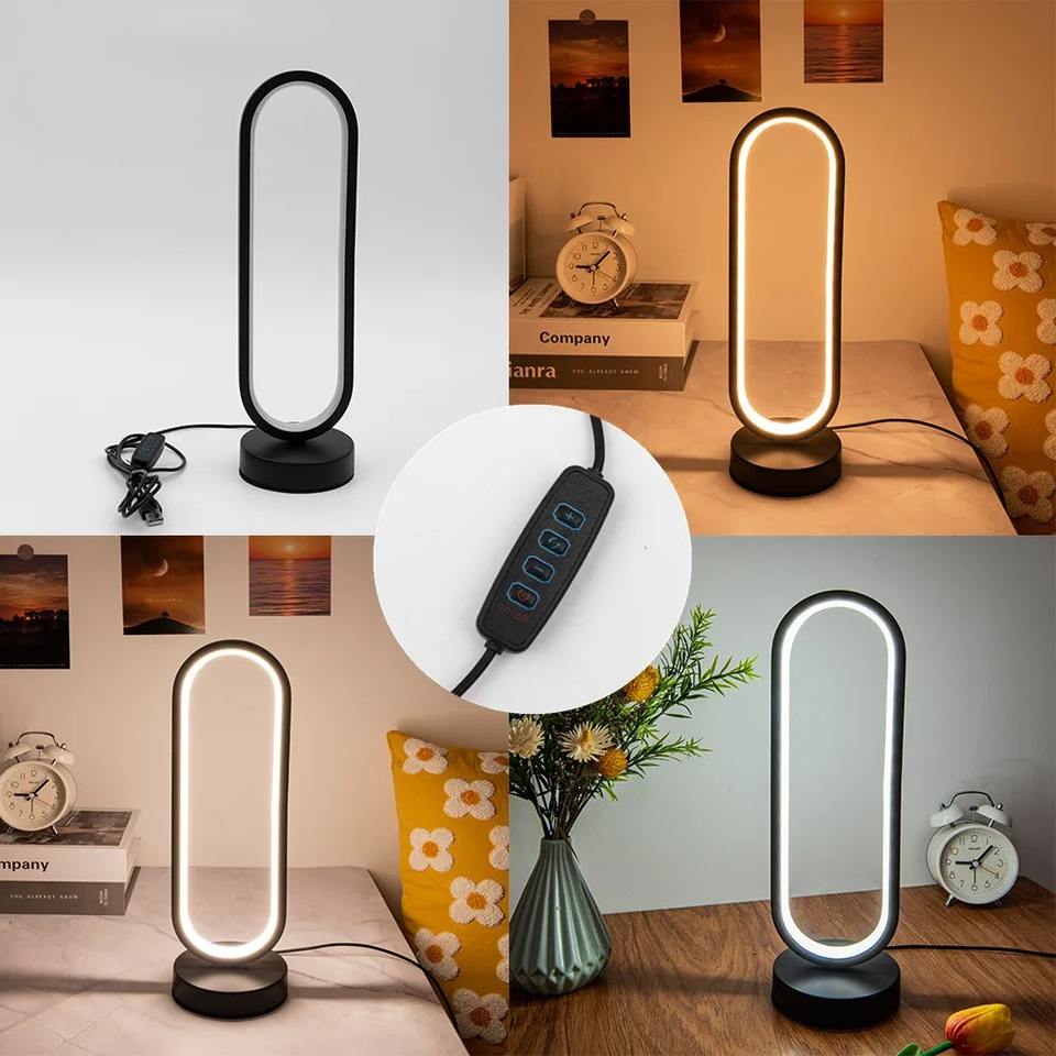 LED Desk Lamp Bedroom Ring Desk Lamp Living Room Black White USB Dimmable Bedside Lamp Round Night Light Decoration
