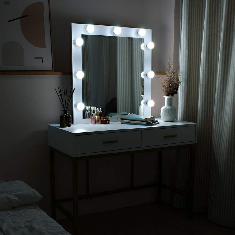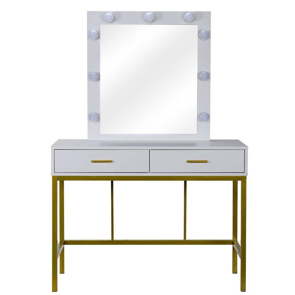 LED Dimmable Bulbs Dressing Table with Two Drawers and Cushioned Stool Makeup Vanities for Bedroom Furniture