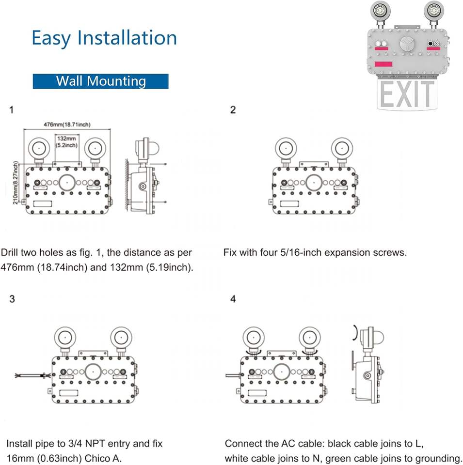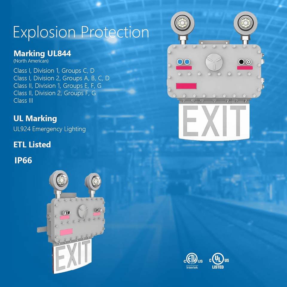 LED Explosion Proof 8W Exit Sign Combo Emergency Light CI DI Emergency Lighting 180min Emergency time IP66 Waterproof