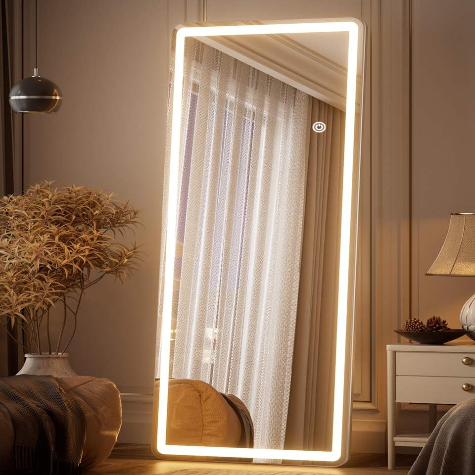 LED Full Length Mirror - Full Length Mirror with Rounded Corners, Floor Standing Bedroom/Dressing Room, 3 Color Lighting, White