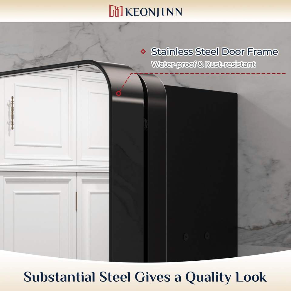LED Illuminated Bathroom Medicine Cabinet with Modern Metal Frame, Wall Mounted Mirror Cabinet, Bathroom Organization