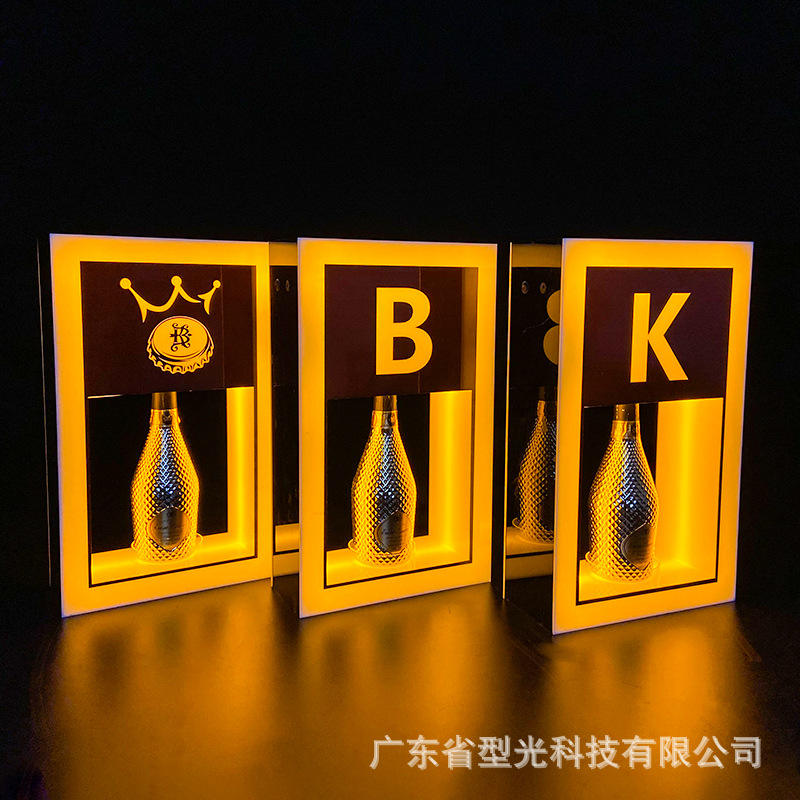LED Illuminated Wine Rack Letter B Champagne Holder For Bars And KTVs Modern Acrylic Design Yellow Light