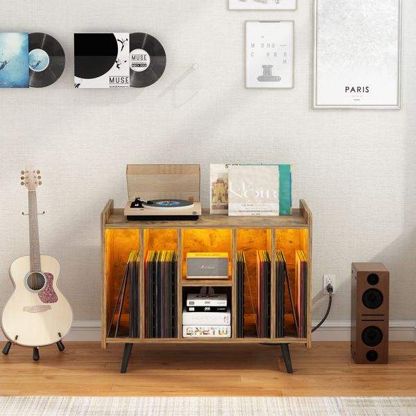 LED Light Bedro Turntable Stand Storage Vinyl Record Storage Cabinet Living Room Cabinets Record Player Stand Album Cabinet