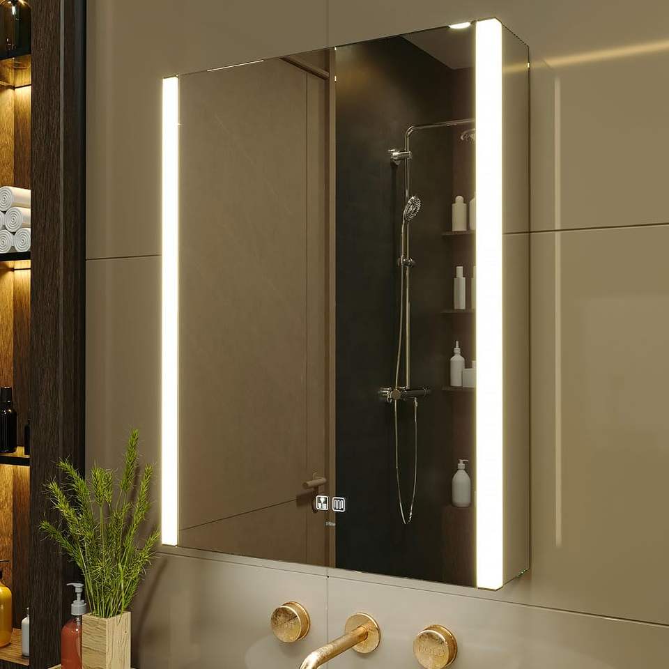 LED Lighted Modern Rectangle Bathroom Medicine Cabinet with Dimmable 3-Color Defogger USB Sockets for Hotels