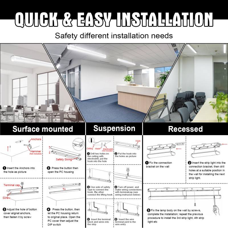 LED Linear Strip Shop Light Fixture 4 Foot 50W 5CCT Hanging Flush Mount Ceiling Lamp for Garage warehouse workshop supermarket