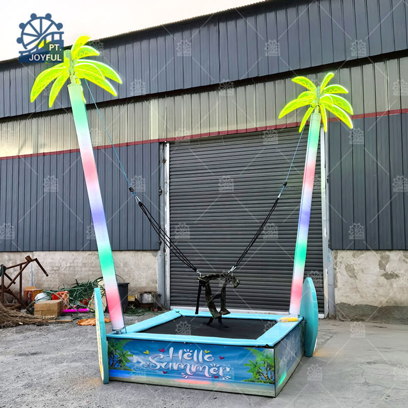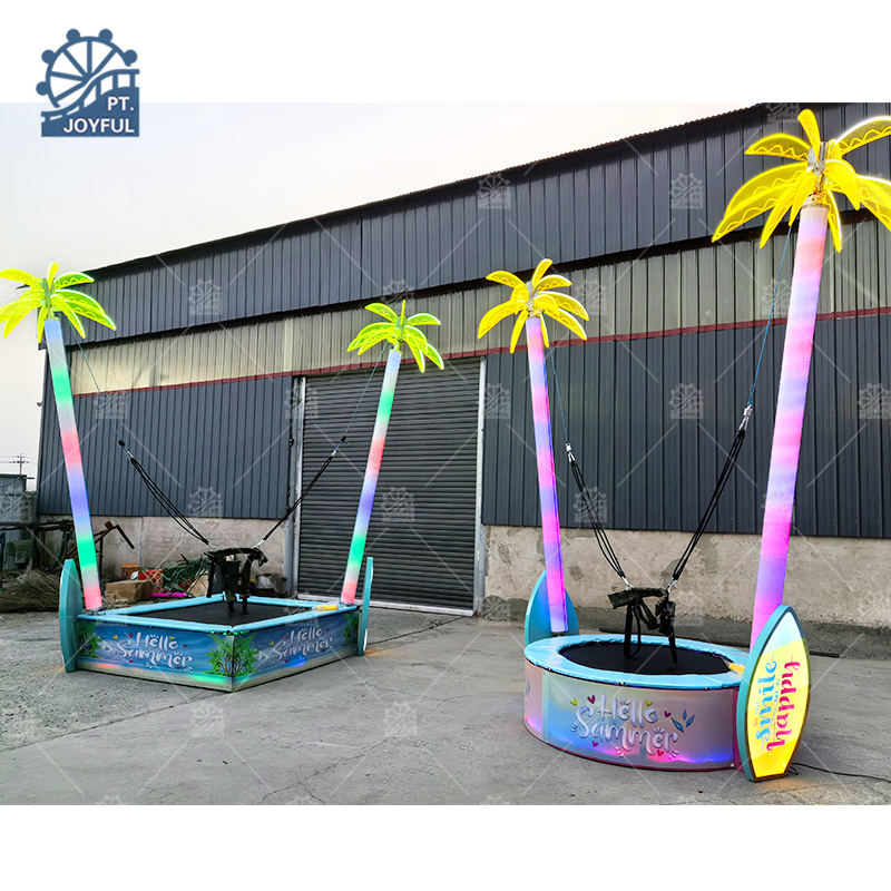 LED Lit Palm Tree Kids Bungee Trampoline Amusement Park Swing Ride Outdoor Indoor Play Equipment for Children Fun