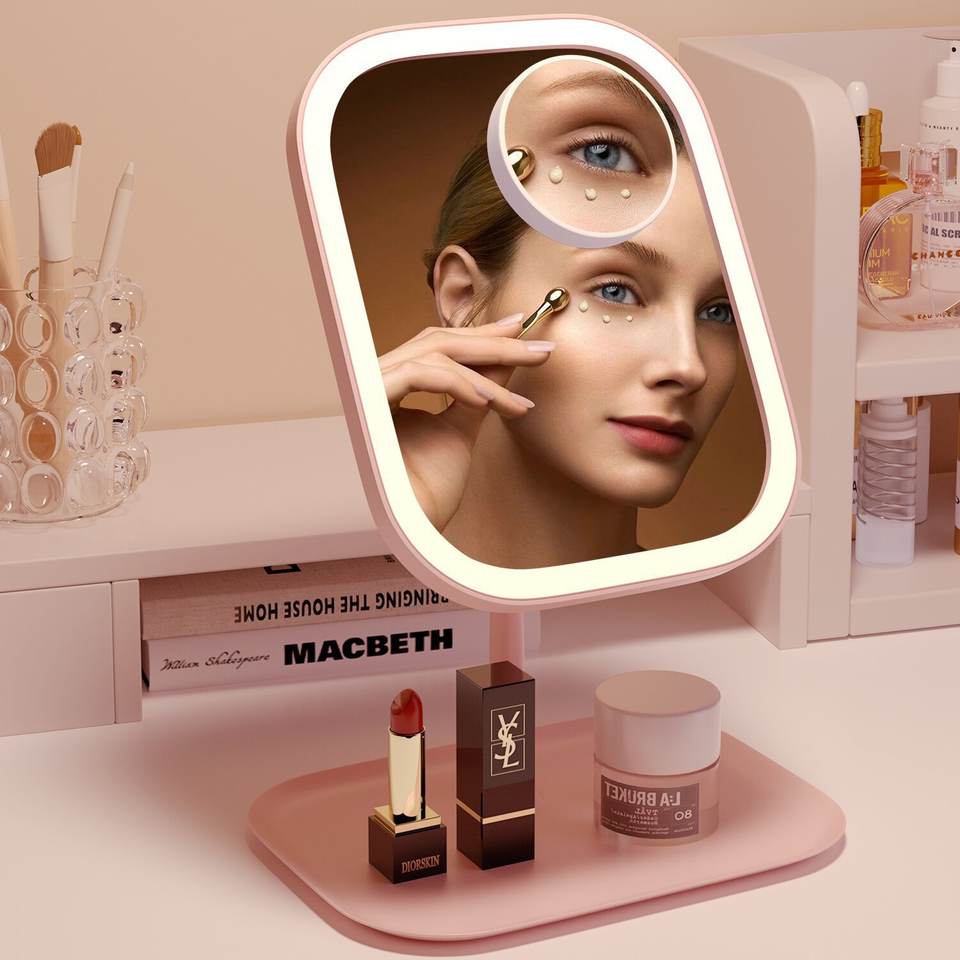 LED Makeup Mirror Desktop Rectangular White Lighted Vanity Mirror For Home Dorm Beauty Application