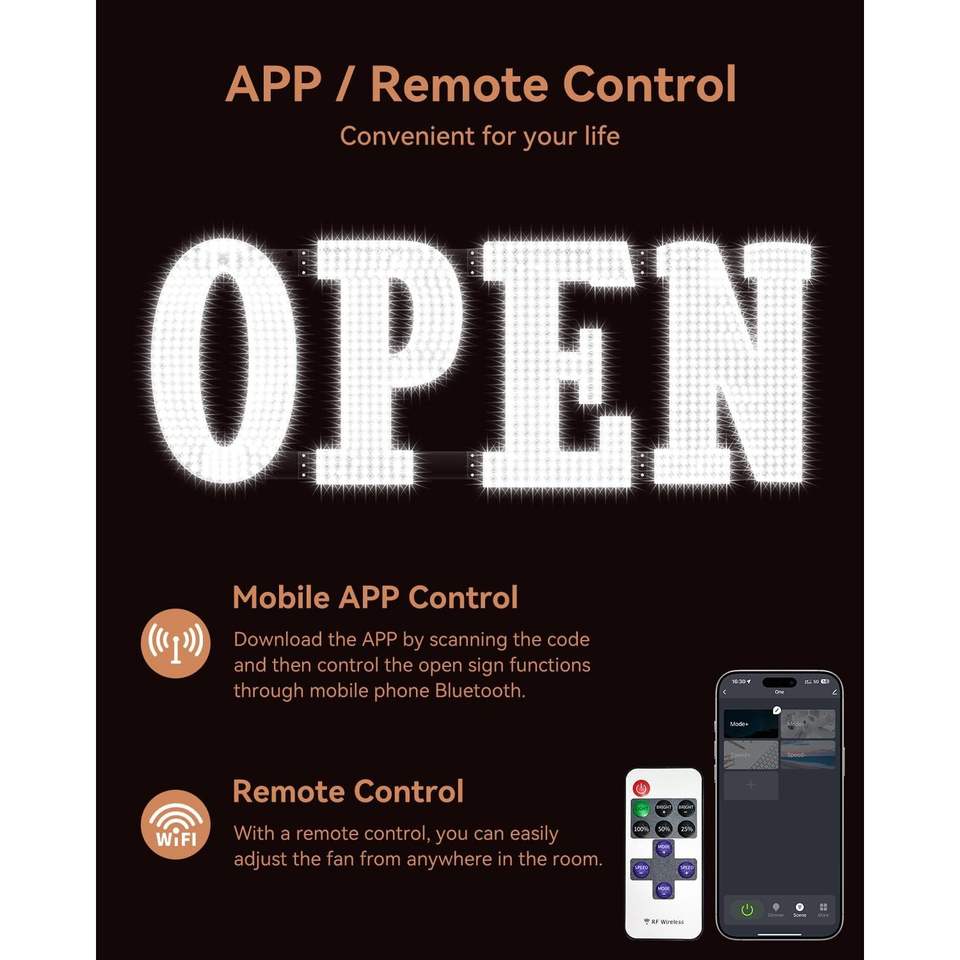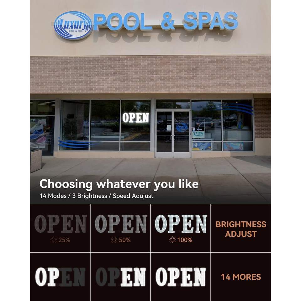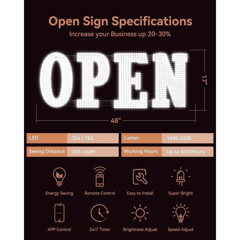 LED Open Sign 48x17 Inch Super Bright Dimmable With Remote Control For Storefront Window Retail Use