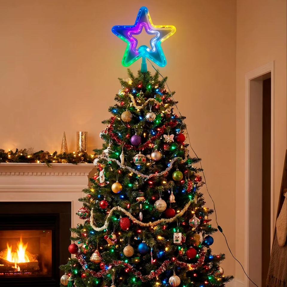 LED Plastic Star Tree Topper Multicolor Dynamic Light Remote Control 3D Home Decoration IP44 Wall Plug Christmas