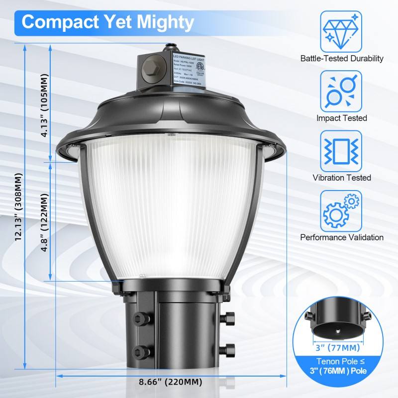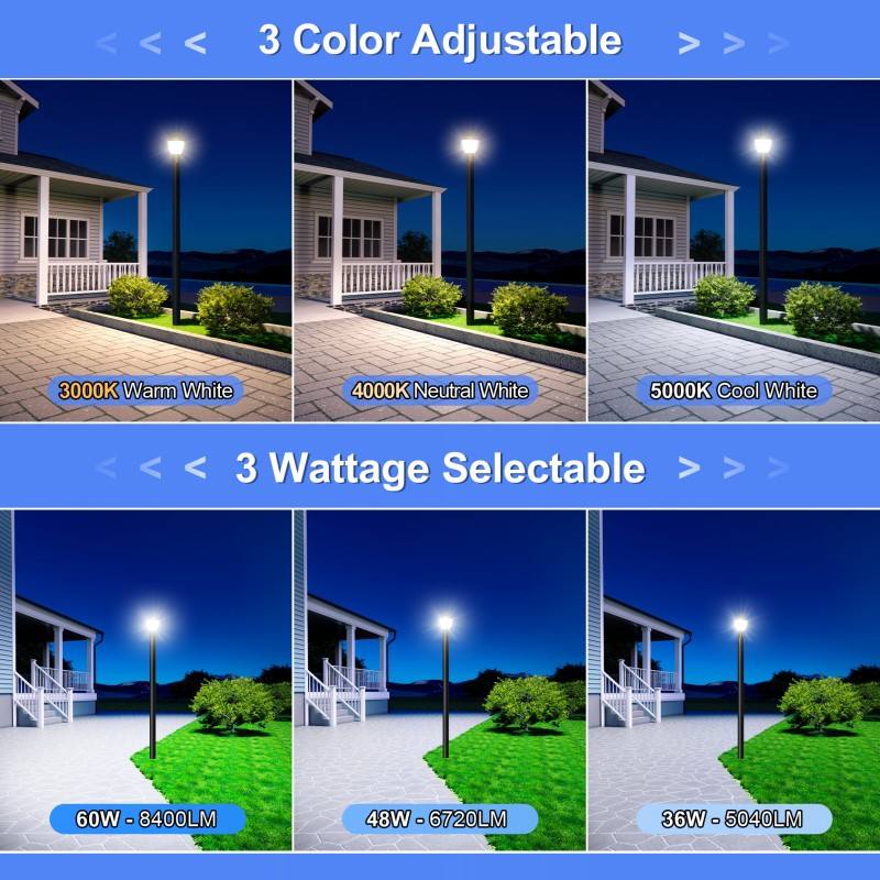 LED Post Top Light 60W/48W/36W CCT Tunable ETL DLC 8400LM Pole Fixture with Photocell IP65 Outdoor Yard Christmas Decorations