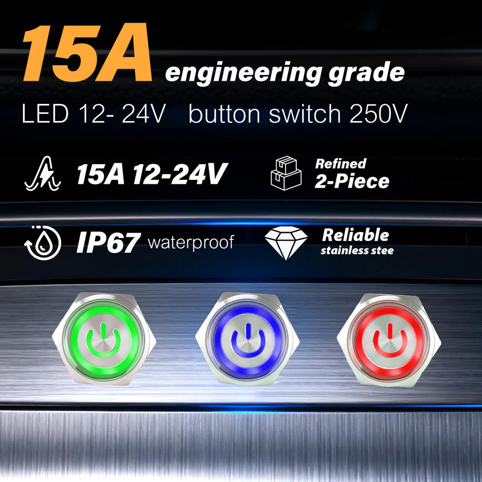 Stainless Steel Aluminum IP65 Push Button Switch 250V 15A 125V 0.5A Power Circuit on off Maintained Momentary Button