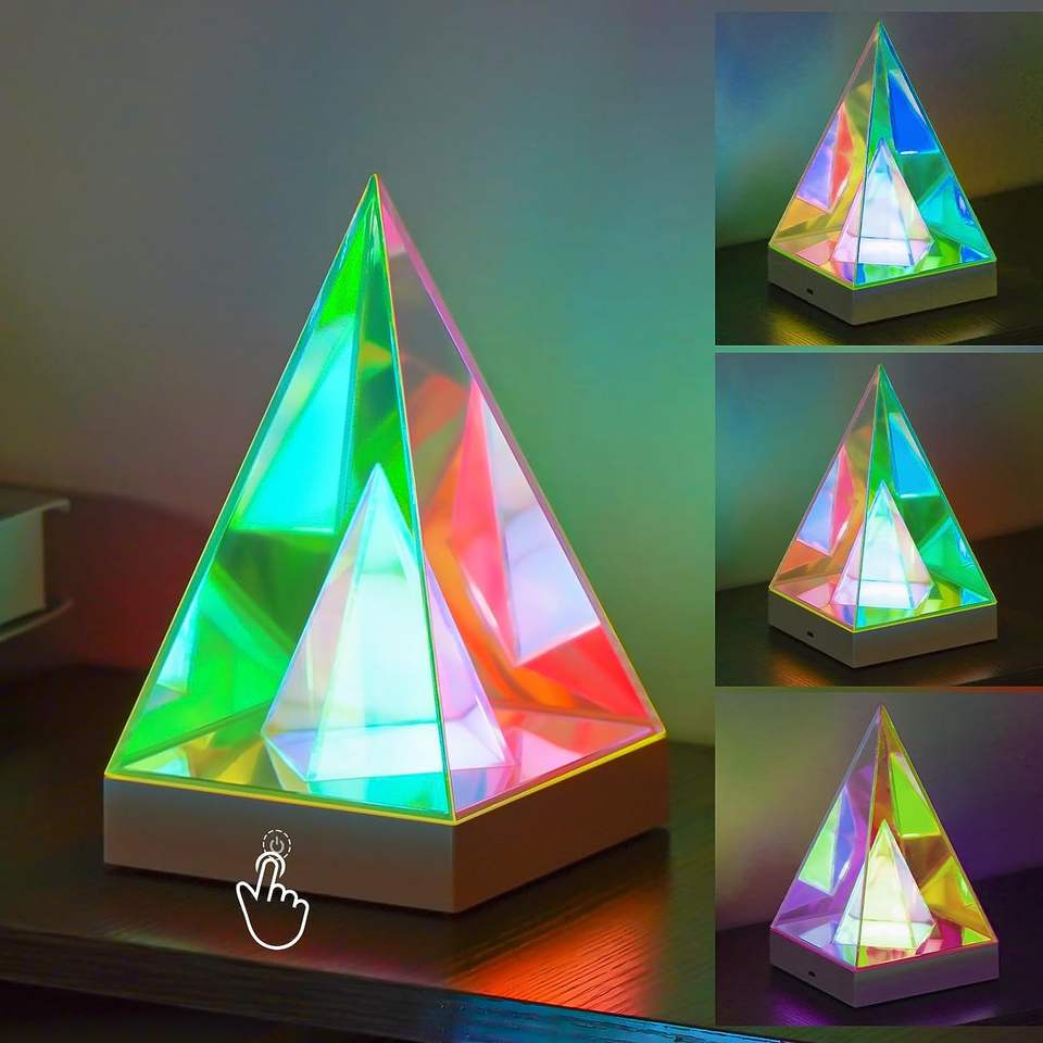 LED Pyramid Night Light Acrylic RGB Decorative Desk Lamp with Remote Control Game Room Bedroom Bedside Creative Decorative Light
