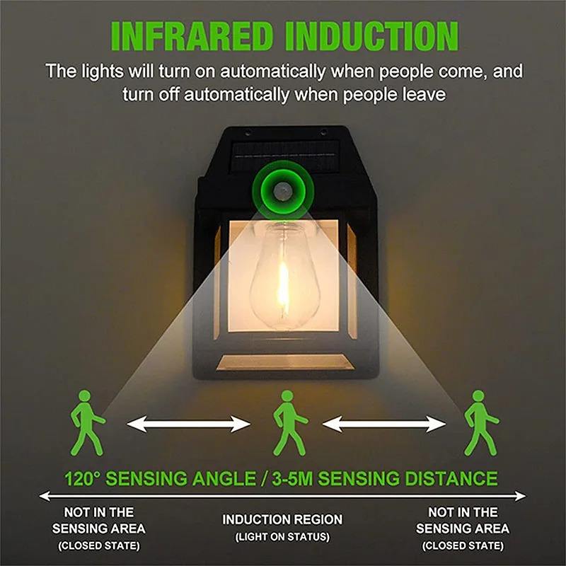 LED Solar Light Waterproof Wall Lamp Motion Sensor Courtyard Garden Lighting Decoration Sunlight Solar Power Yard Tungsten Lamp