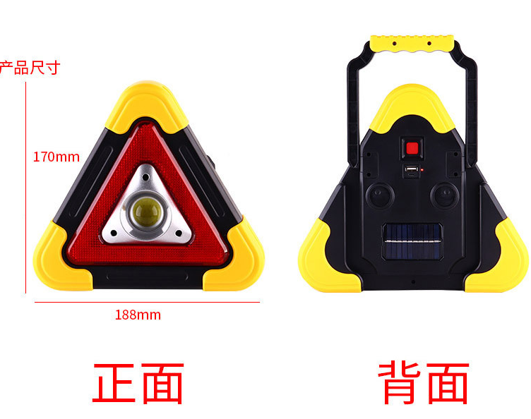 LED Triangular Warning Light Solar-Powered LED Outdoor Flashlight Traffic Signal Light Vehicle Road Safety Inspection Work Light