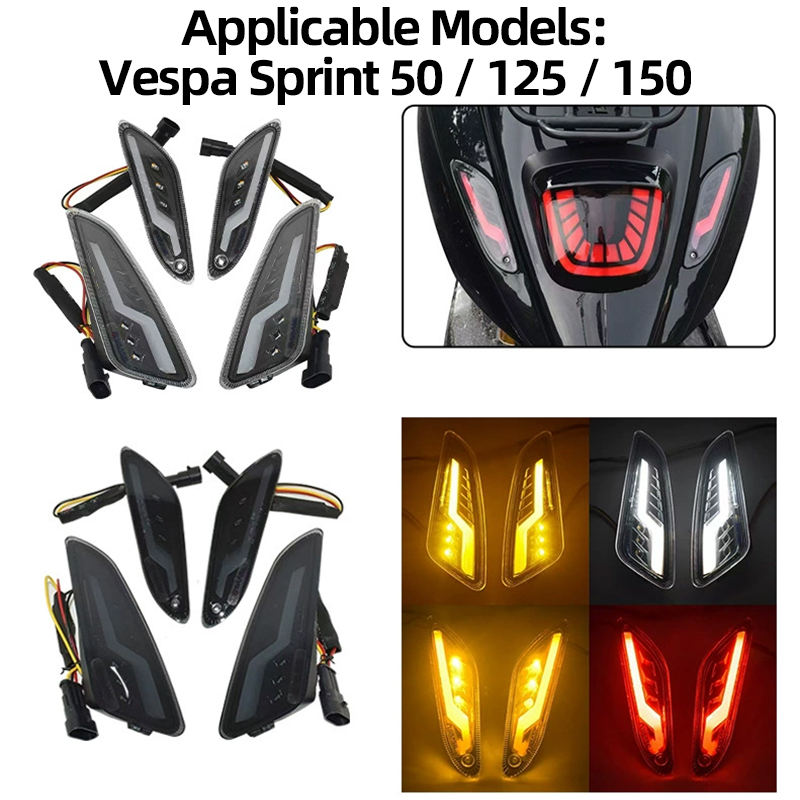 LED Turn Signal Tail Light Set for Vespa Sprint 50 125 150, Modified Motorcycle Warning Light