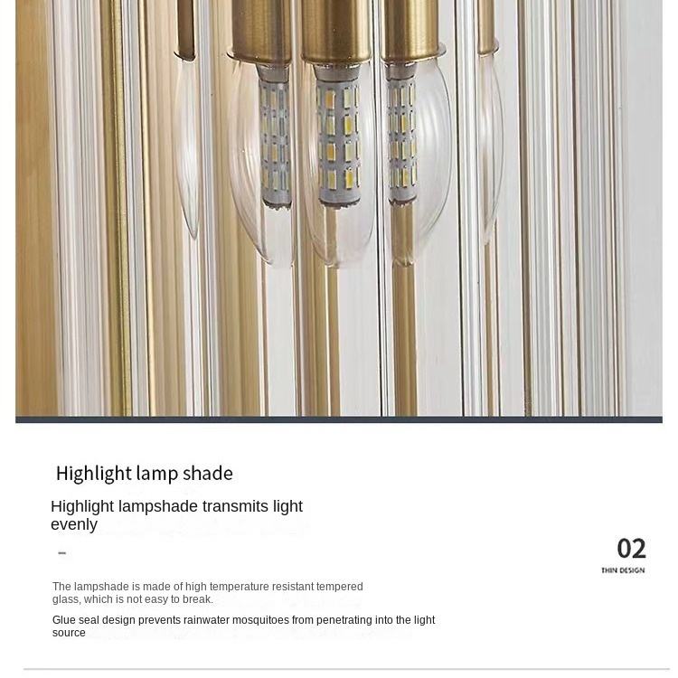 LED Wall Lights for Bedroom Golden Black Body with Stainless Steel & Crystal Glass Long Strip Sconces Direct LED Light Source