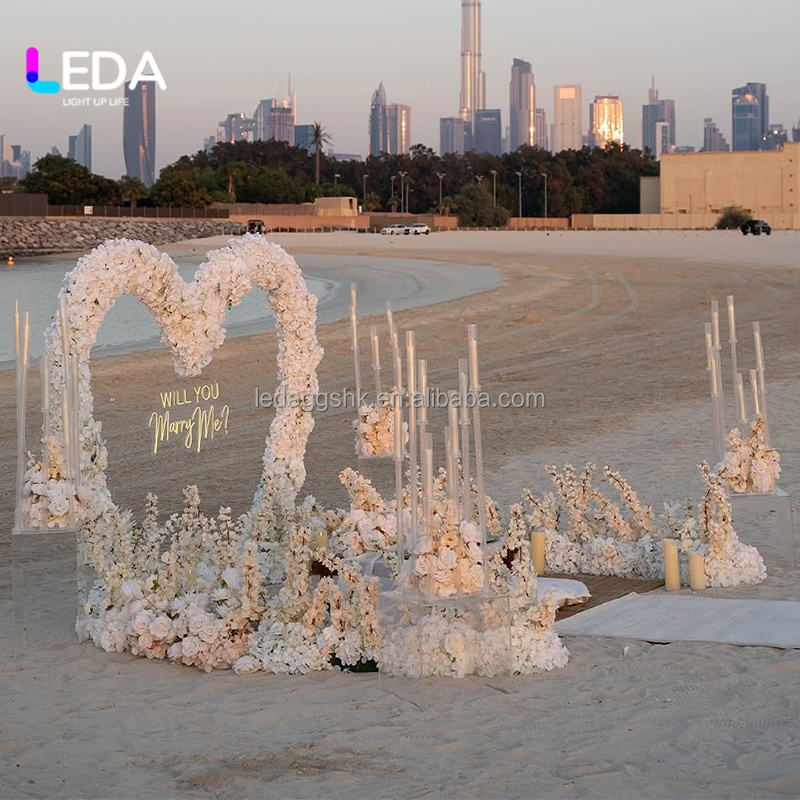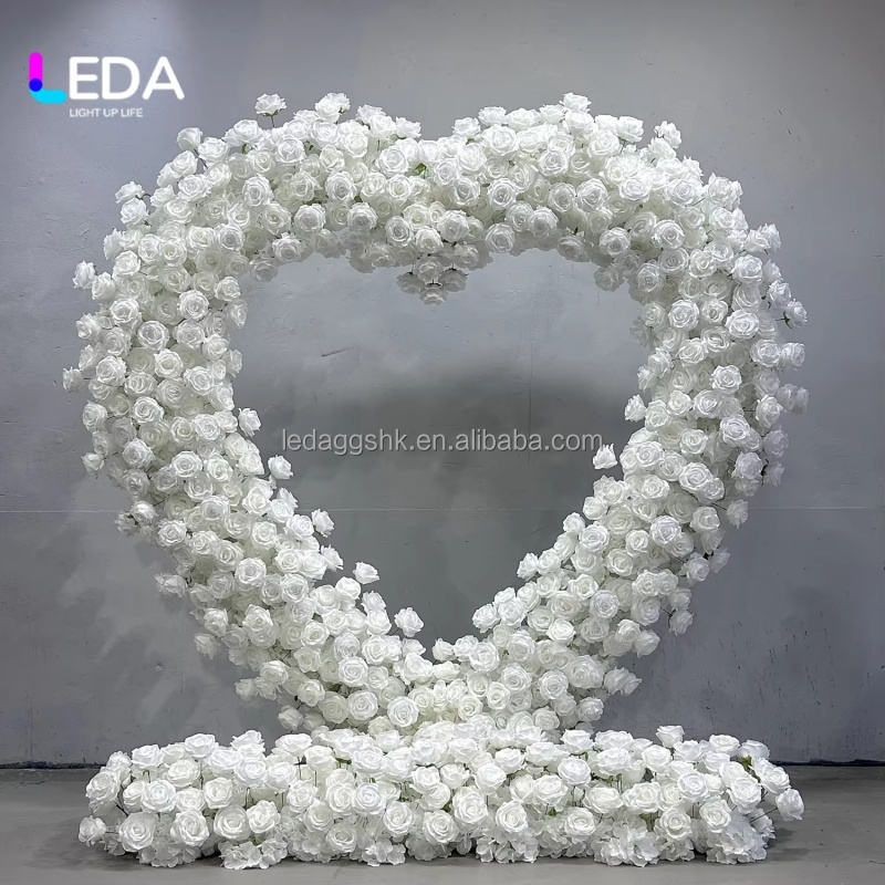 LEDA Custom 7ft Handmade Silk Flower Arches Wedding Decoration Backdrop Artificial Pink Heart Shaped Arch Wedding Party Stage