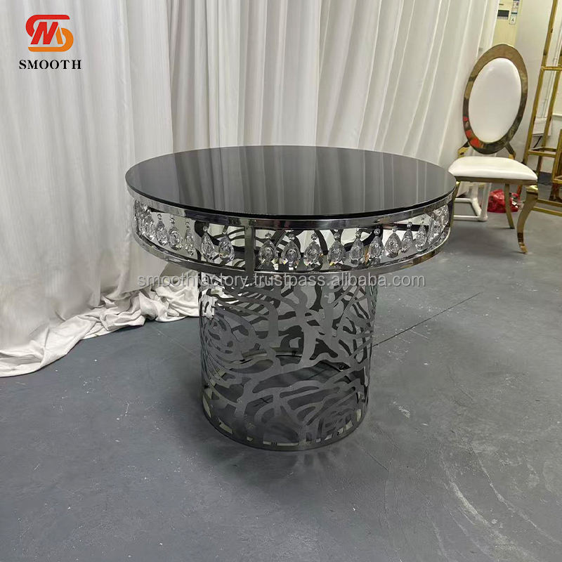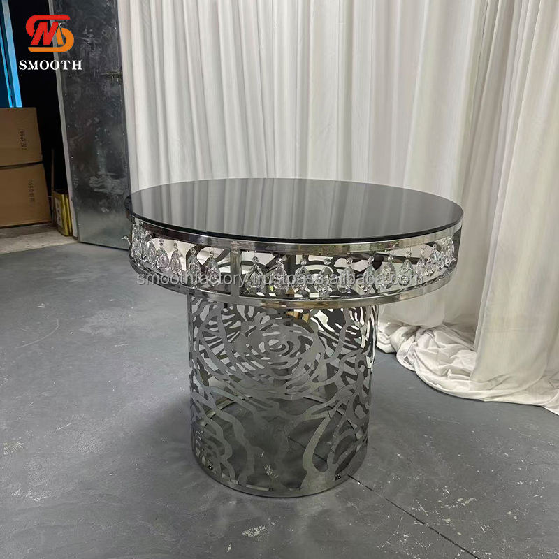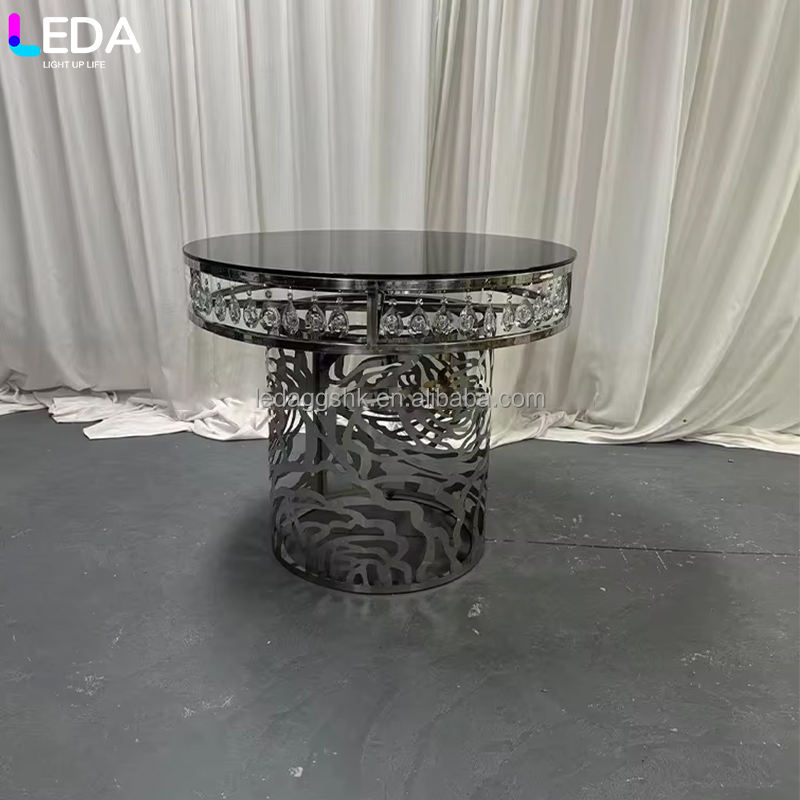 LEDA Custom Wedding Banquets Events Circle Silver Frame Rose Hollow Pattern Table Stainless Steel Hotel Dining Table