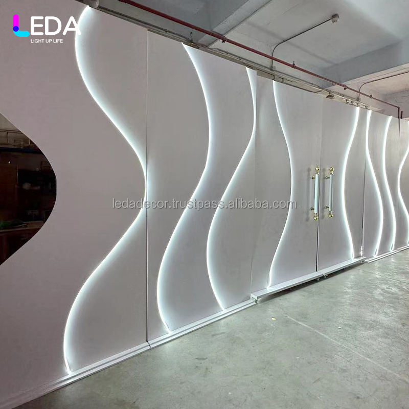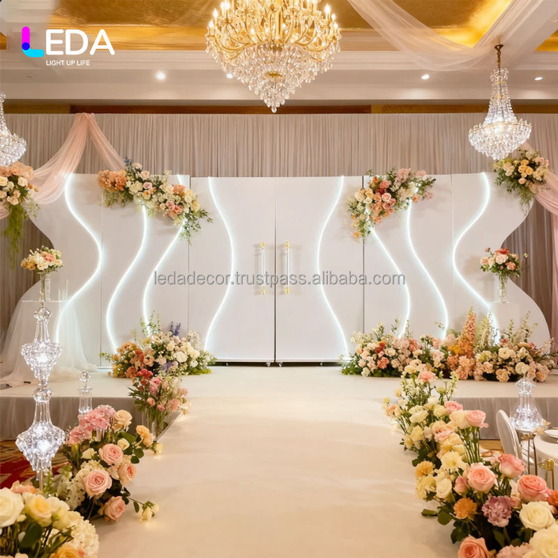 LEDA Custom White Luxury Acrylic Wedding Stage Backdrop Stand LED Light Strip Wave Backdrop for Event Decoration