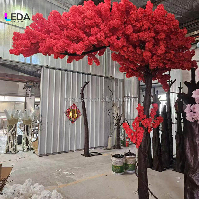 LEDA Custom White Red Large Cherry Blossom Tree Wedding Banquet Decoration Drooping Cherry Flower Artificial Tree