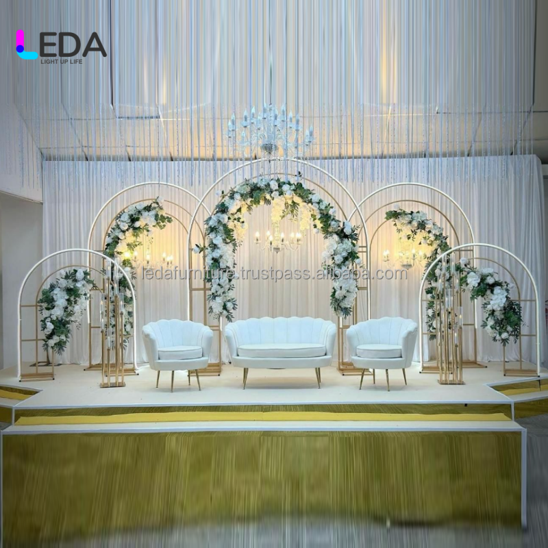 LEDA Customized Gold Floral Backdrop Stainless Steel Stand Metal Arched Backdrop Frame for Events Decor