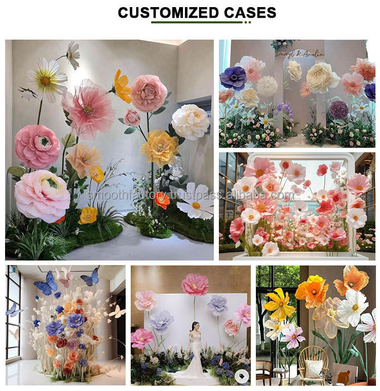 LEDA Customized Wedding Events Banquet Hall Ceiling Decoration White Giant Organza Art Fabric Flower Heads