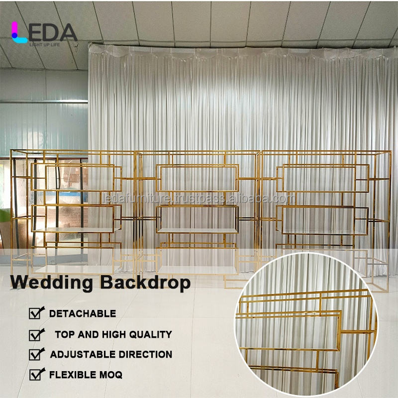 LEDA Elegant Metal Shelf Candle Wall Gold Backdrop Flower Frame for Wedding Event Decoration