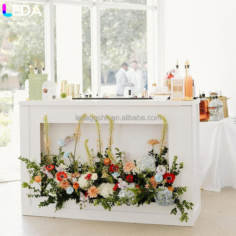 LEDA Family Banquets Parties Acrylic Table White Bar Table With Floral Arrangement