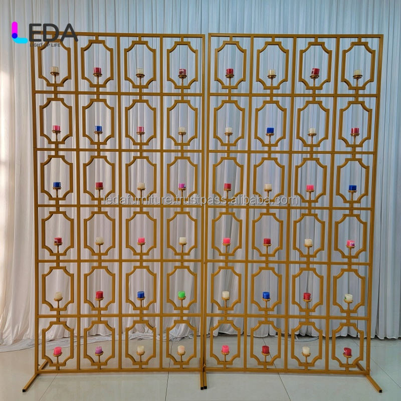 LEDA Gold Candle Holder Wall Square Shape Party Decor Metal Backdrop Stand for Wedding Decoration